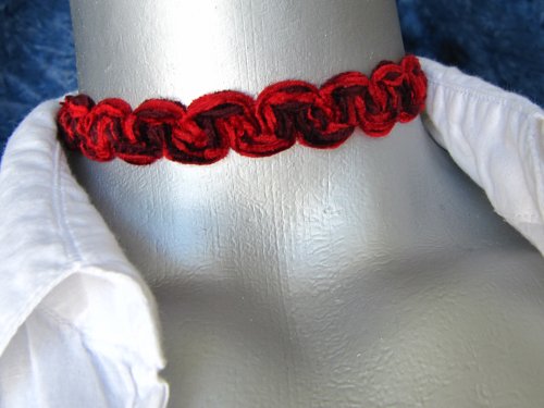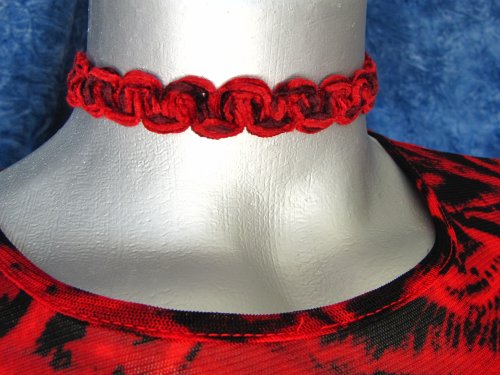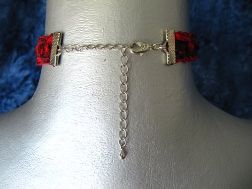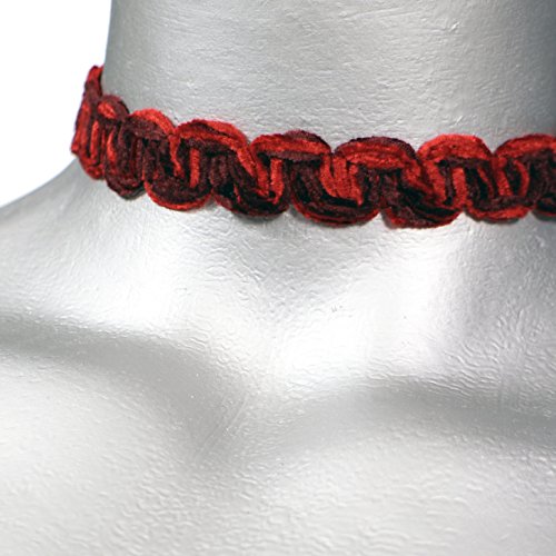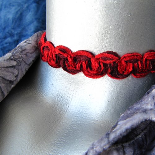 Twilight's Fancy Gothic Blood Red Swirl Chenille Ribbon Choker Necklace -- Size Large