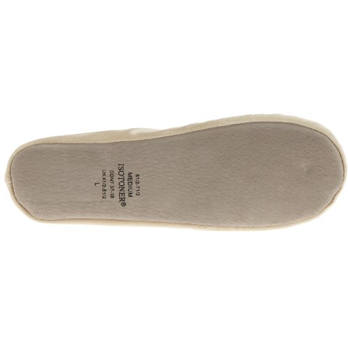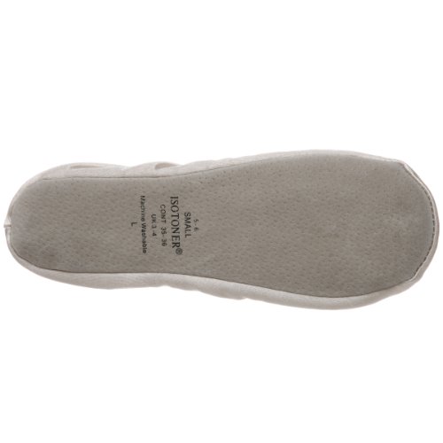 Amazon.com For perfect pirouettes around the house, check out ISOTONER's Classic Satin slipper. This sweet offering in fabric boasts a cushioned insole for comfort and an elasticized topline for a secure fit. Machine washability ensures easy wear. 0