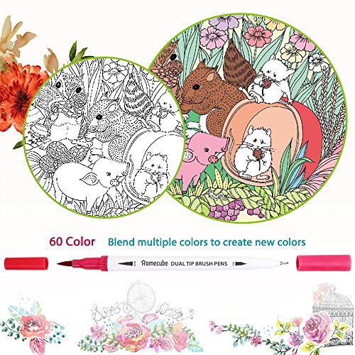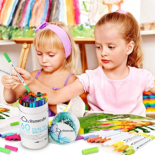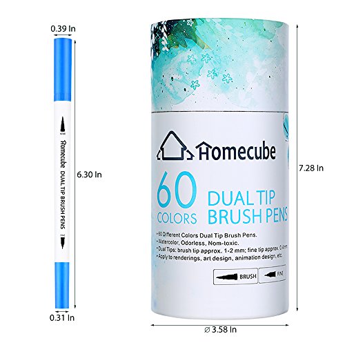 60 Dual Tip Brush Pens, Homecube Fine liner Water Based Markers Set for Coloring Books, Drawing, Painting, Writing and Calligraphy