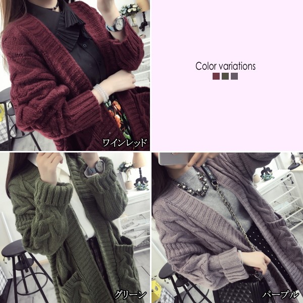 | 商品名 | ケーブル編み ロングニットカーディガン コーディガン |