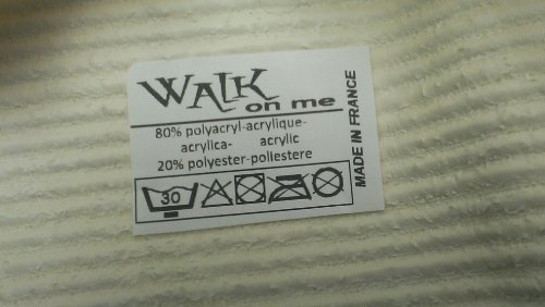 Walk on Me rugs are made of acrylic and polyester. They can be machine washed in cold water, but all they really need is a good shaking as the dirt just sits in the surface. All rugs are hypo allergenic, and eco-friendly. The rugs are machine knitted, they are not tufted. Large variety of Colors, Sizes and patterns are available.Feature