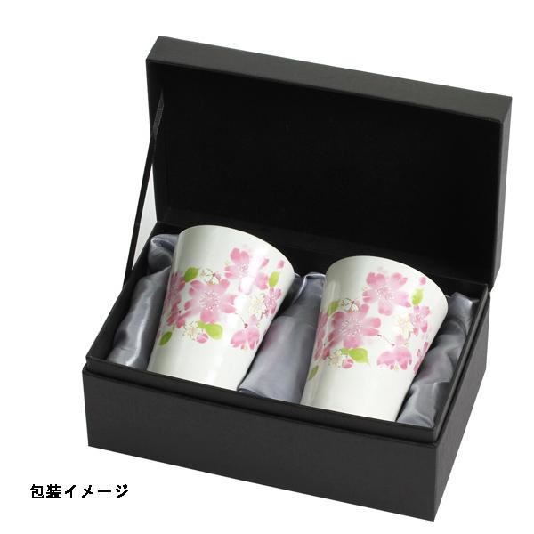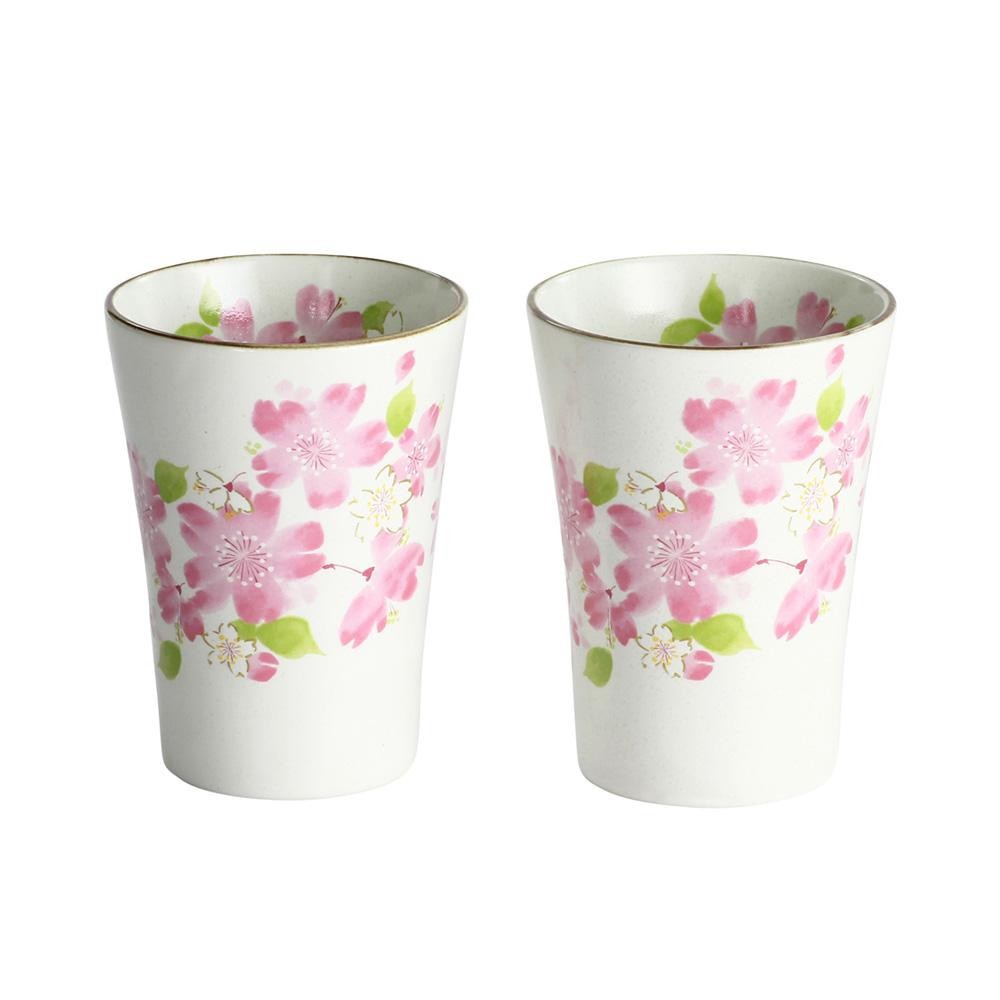 桜のピンクと葉の緑が鮮やかなフリーカップのペアセットです。大切な方へのギフトとしても最適です。