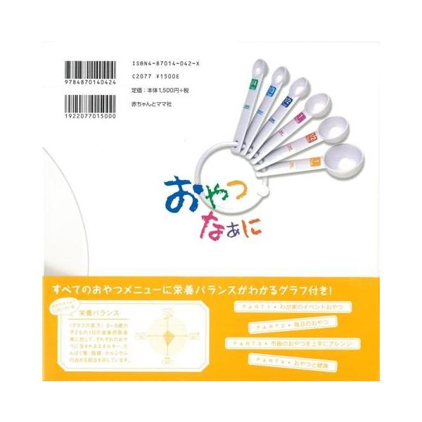 【商品基本情報】 商品名称:おやつなぁに-3歳からの健康おやつづくり 著者/出版社:水野 清子/水野 清子 初版発行日:2005/11/20 サイズ:A4変判 ページ数:109 ISBN/JAN:487014042X/4528189468344