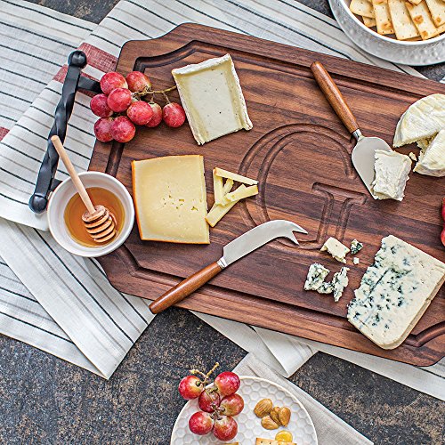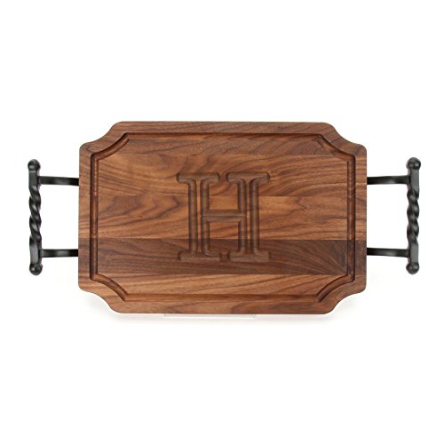 BigWood Boards W310-STWB-H Cutting Board with Twisted Ball Handle Finish with Scalloped Corners, 12-Inch by 18-Inch by 1-Inch, Monogrammed "H", Walnut