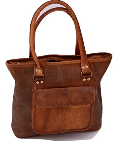 -. Feature : Size : 12 inches Tall and 16 inches Wide one FRONT POCKET Two Zipper pocket inside.. / Style-Tote/Shoppers/Shoulder Bag, Material - Leather , Color-brown, Making- Handmade / PLEASE Note: These are not colored bags and shades are given through a natural and traditional process using vegetable oil and sun tanning, so the color will differ from the one pictured here. Every bag has a slightly different shade / NOTE: Leather bag have a distinctive SMELL that fades away with days of use. Most of our customers tend to like this earthly smell, some don't. / given pictures. Because every bag is handmade from leather which is naturally tanned and not chemically treated, each bag has unique and individual markings and coloring's and may vary slightly from our photographs.