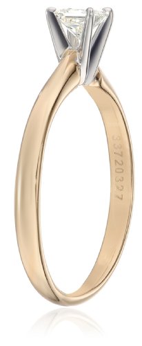The princess-cut diamond is both romantic and modern, with its clean square lines and beautiful radiance. This stunning stone creates a classic solitaire setting on the Certified 18k Gold Classic Princess Cut Engagement Ring. Whether she prefers warm yellow gold hues or the bright white gold finish this ring will create a timeless symbol of your love. The featured diamond stone is graded with H-I color and slightly included with SI1-SI2 clarity. The stone holds 1/4 carats in weight. It is safely secured by a 4-prong basket setting.Feature
