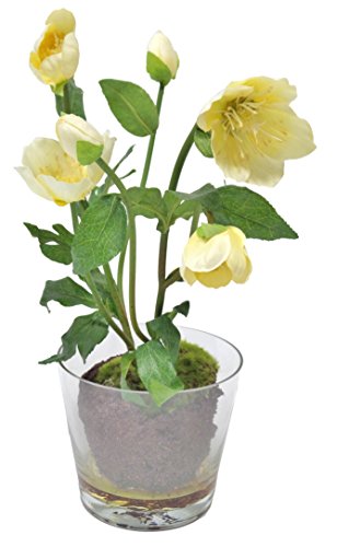 Gold Eagle USA Artificial Light Yellow Christmas Rose Plant with Water Glass Vase, 16"