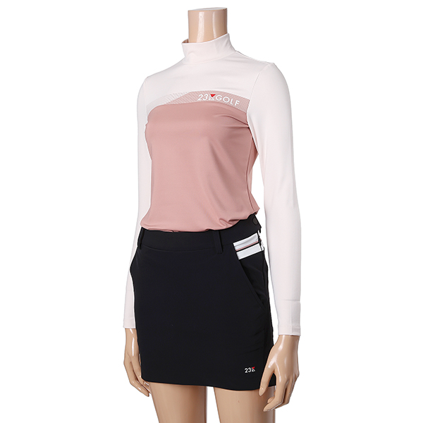 - 도트 프린트 기법을 사용한 컬러 블러킹 하이넥 티셔츠