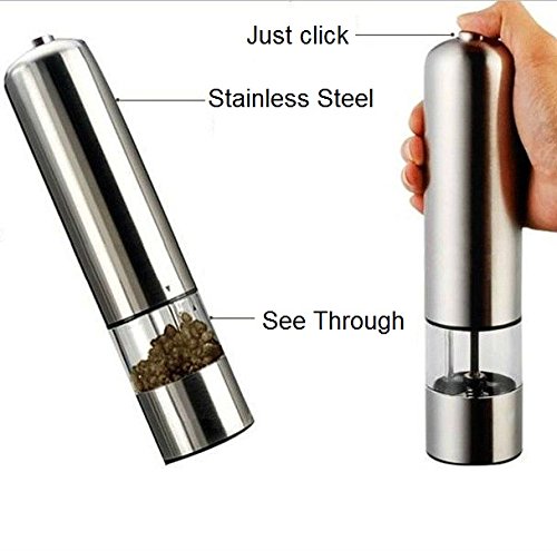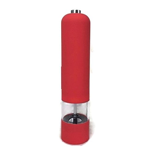 iRSE Electric Stainless Steel Salt and Pepper Grinder - Brushed Stainless Steel Pepper Mill and Salt Mill, plastic see through Tall Body, Grade Adjustable Ceramic Rotor- Salt and Pepper Shaker (Red)