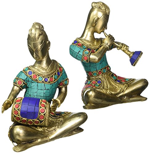 Home Décor Indian Art Brass Musician Figurine with stone work