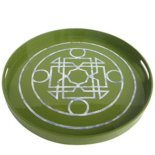 A&B Home KIH39189-GREE Mother Of Pearl Inlay Lacquered Tray