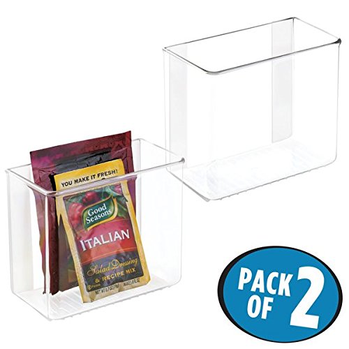 mDesign Kitchen Self-Adhesive Organizer for Food Pouches, Spice Packets - Pack of 2, 3" x 6" x 5", Clear