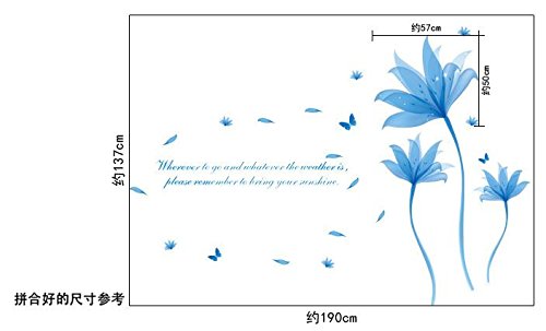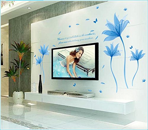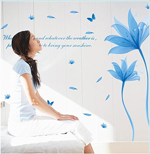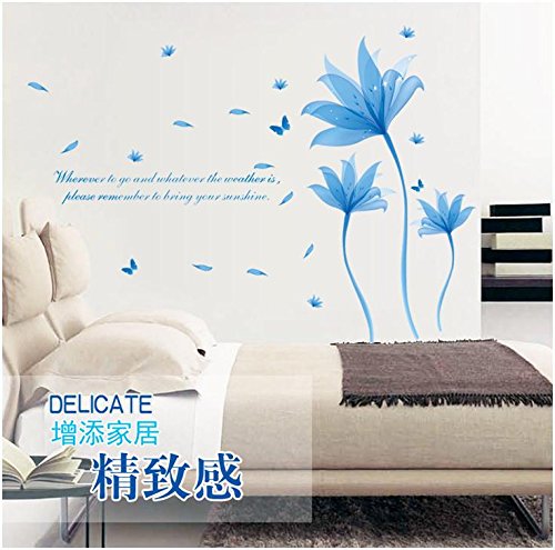 -. Title : Removeable PVC Blue Flower Wall Sticker Romantic Adornments Wall Decor for Girls Room Decoration