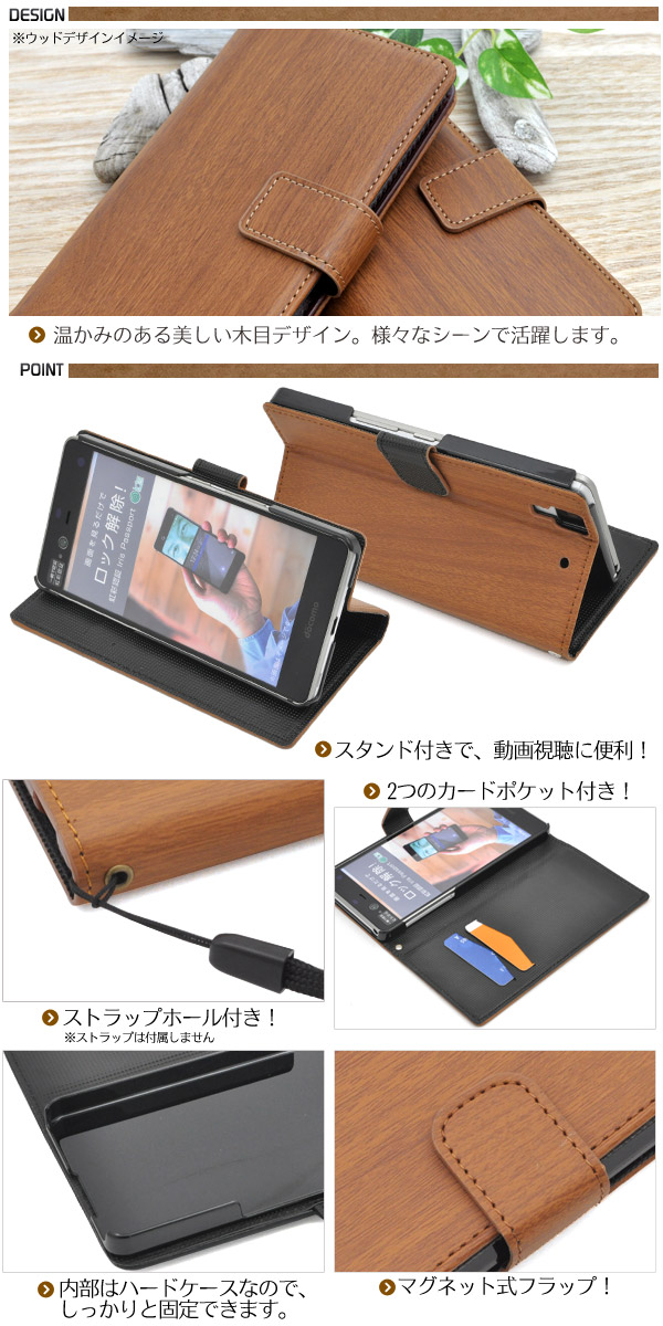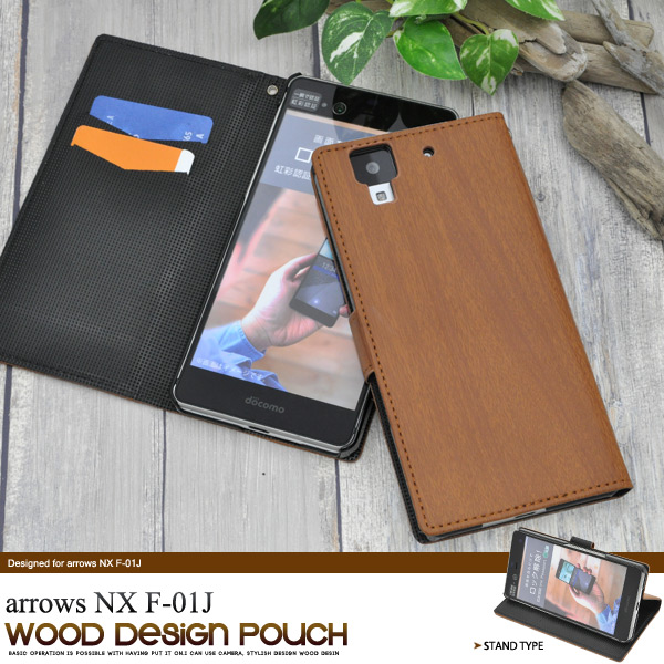 木目調のarrows NX F-01J用スタンドケースポーチ。