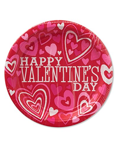 - Fun and festive small party plates feature an on-trend, allover hearts design with Happy Valentine's Day lettering