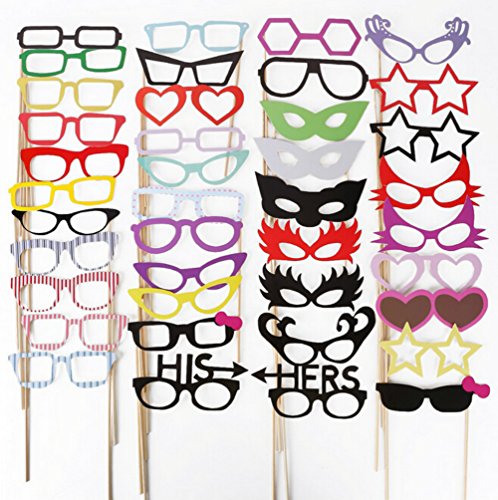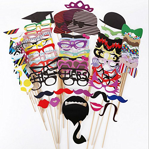 - LARGE VARIETY: 76 Pieces Super Value Pack. Hundreds of Combinations of Hats, Colorful Ties, Funny Glasses, Lips and Mustaches. Guests LOVE Them and Bring Huge Fun to Birthday Parties, Wedding Parties, Engagement, Graduation Parties, Prom, Holiday Parties, Family Reunions etc.