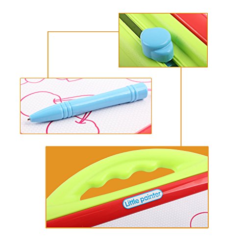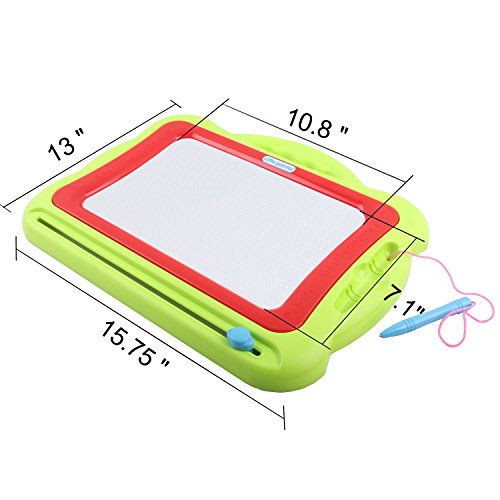 Advantages:Makes your doodle much vivider than traditional black colorPen with cable connecting to the boardLightweight and hand carry design Kids can carry it everywhere by themselvesSimply swipe back and forth to wipe out the doodles and start your new creativityProduct FeaturesAll kids love drawing, and when they’re finished simply swipe the lever and start over with a completely blank canvas! Promotes creativity and good for hours of fun! Great for long car trips; draw in blue, red, green and yellow depending on what part of the board you’ re using. Built from high-quality plastic to stand the test of travel and playtime. Meant for children 3 years and up, and all of our products are BPA free meaning they’ re safe for your little onesSAFETY & RECOMMENDATIONALL COOL TOY'S products are made up of superior quality materials that are 100% non-toxic and safe for childrenDo not wash the drawing board as the screen may become water lapped and lose magnetic force.Recommended for children who are at least 3 years old.choking hazard Do not keep the small parts of the toy in the mouth in case your child swallows it.