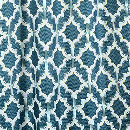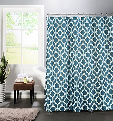 Creative Home Ideas Faux Linen Textured 13-Piece Shower Curtain with Metal Roller Hooks, Loren in Blue/White