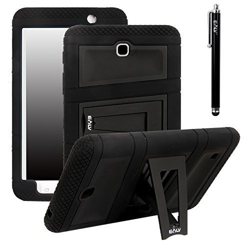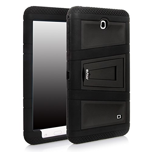 Galaxy Tab 4 8.0 Case, High Impact Resistant Full-body Protection Hybrid Armor Defender Case with Built-in Stand and 1 Black Stylus - BLACK