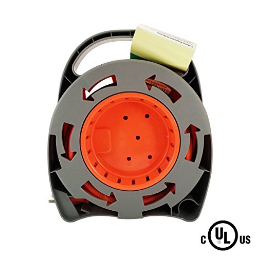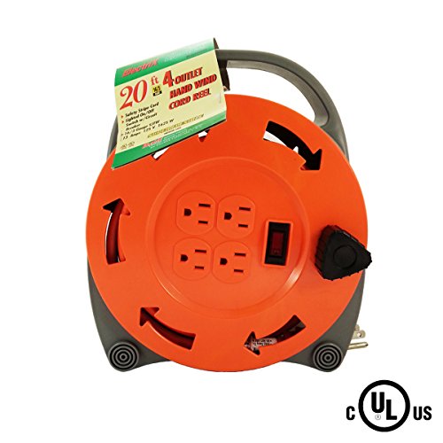 - 20Ft 16/3 AWG SJTW 4 Outlet Hand Wind Retractable Grounded Cord Reel