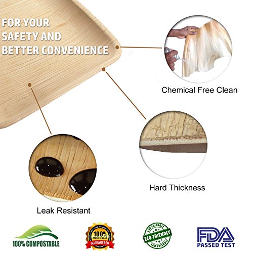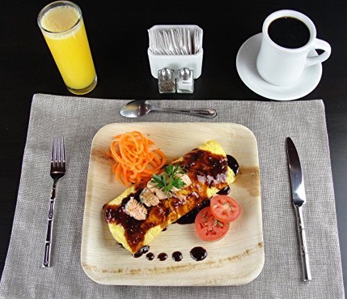 ✓ ELEGANT TABLE SETTING: These unique disposable plates upstage typical paper plates featuring square shape with rounded edges & textured natural finish that gives each plate a one-of-a-kind design.