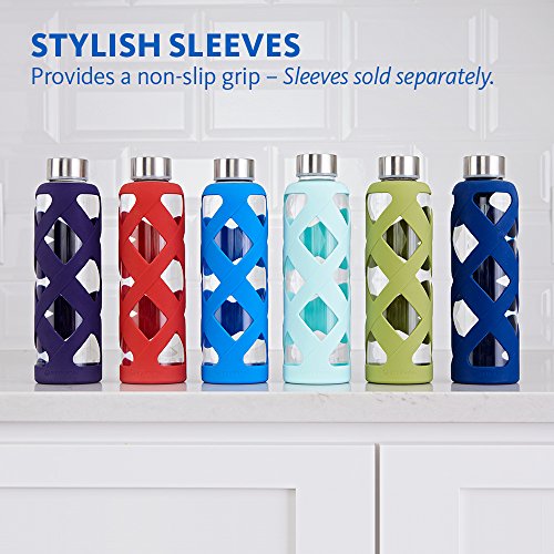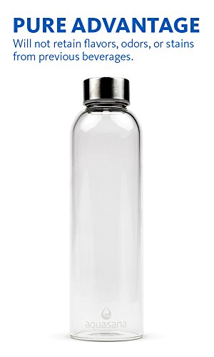 Aquasana borosilicate glass bottles are scientifically constructed to be stronger, shatter and scratch resistant, BPA, lead, and cadmium free to keep your beverages pure and uncontaminated. Simply fill with the beverage of your choice - this non-porous glass will not retain flavors, odors, or stains from previous beverages. The Stainless Steel lid with rubber o-ring gives you a water-tight seal for no leaks. The slim design fits in most car cup holders. Small enough to carry everywhere, big enough to quench your thirst.