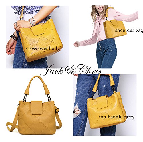 -. Brand : Jack&Chris -. Color : Yellow -. Department : womens -. EAN : 0652210368984 -. Feature : Design: real leather / cute yellow / leather shoulder strap / symmetrically stitching designed on surface / polished black hardware / polyester-cotton blend lining / top zipper closure . / Carry styles: shoulder bag / crossbody bag / handbag / small satchel / top handle bag / Dimension:(L*H*W) 9.8*8.6*5 inches / gift a removable and adjustable shoulder strap / net weight: 0.7kg / pockets: 2*interior zip pockets, 2*item slots, 1*exterior zip pocket / Occations: basic daily use / dating / short trip / picnic / amusement park / 【Jack&Chris】is a trademark registered in the US, UK and etc. Our brand has gained recognition and protection from amazon. We will not allow any forms of infringement. Please pay attention to avoid purchasing counterfeits from other seller. -. MPN : 4331342312 -. PackageQuantity : 1 -. PartNumber : 4331342312 -. ProductGroup : Shoes -. ProductTypeName : HANDBAG -. Size : Small -. Title : Jack&Chris Designer Handbags Crossbody Bags for Women Leather Satchel Shoulder Purses, WB510M (Yellow) -. UPC : 652210368984