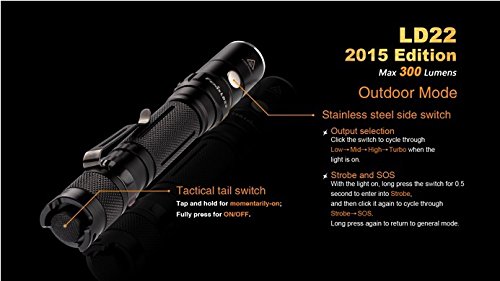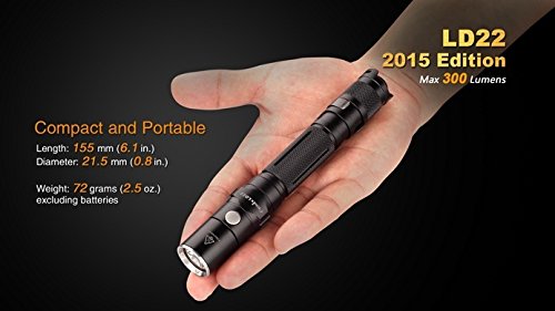 Fenix LD22 300 Lumen 2015 edition LED tactical Flashlight with AOD-S diffuser, holster, lanyard, clip and Two EdisonBright AA Alkaline batteries