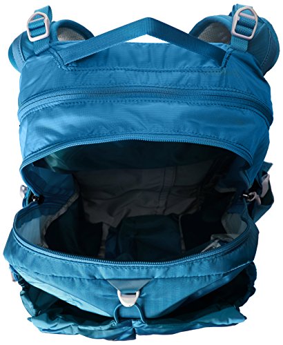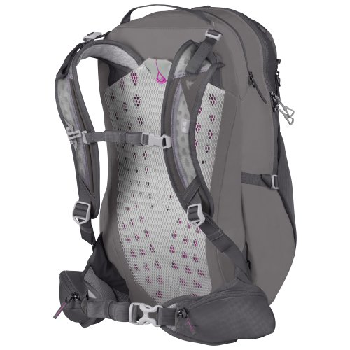 -. Feature : BioSync Suspension technology to keep the pack moving with you for unrestricted motion / Women's-specific design / Zippered main compartment with two internal mesh organizer pockets / Zippered accessory pocket with internal security zip pocket / Expandable stretch front pocket with tuck-away bungee closure fits helmets
