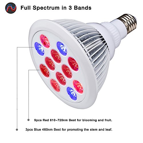 - Feature : 12W rated power with 12Leds chips including 9pcs Red(6pcs 660nm, 3pcs 630nm) and 3pcs Blue(460nm). Brighter and better photosynthesis performance. / The Blue light is ideal for vegetative growth that creates tall, leafy plants while the Red light helps encourage budding,flowering and fruiting. It is suitable for all stages of plant growth. This bulb is used to grow many fruits and vegetables. the light that they can use, offering them an extra boost in production / This plant growing lighting is designed to fit standard E27 socket, it also fit E26 socket. Easy to set up, plug and play, no special lamp needed, a desk lamp or other equipment with E27/E26 socket will do. / Low power consumption but high luminous efficiency. Unique structural design with a pure-sink fashion, no worry any noticeable heat even 18hrs/day. Keeping your temperatures down perfectly. / Led grow strip light can improve the health of plant and growing. It is suitable for bananas, flowers, Dendrobium orchids, tobacco, seaweed, green peppers, eggplant, bitter gourd, tomatoes, grapes, lettuce, lettuce and other herbs, vegetables, flowers, plants and plant tissue culture