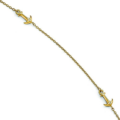 -. Title : 14k Gold CZ Polished Anchor With 1inch Ext. Anklet - 9 Inch