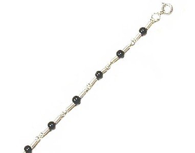 -. Title : Womens Black Glass Barrel Beads & Sterling Silver Womens Anklet, Adjustable 10" - 11"