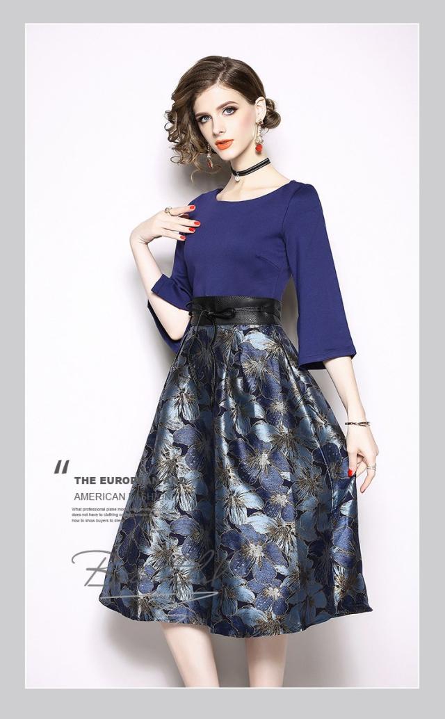 フリル フラワーカット 膝丈 ワンピース ドレス 革ベルト 結婚式 二次会 女子会 ディナー デート 通勤