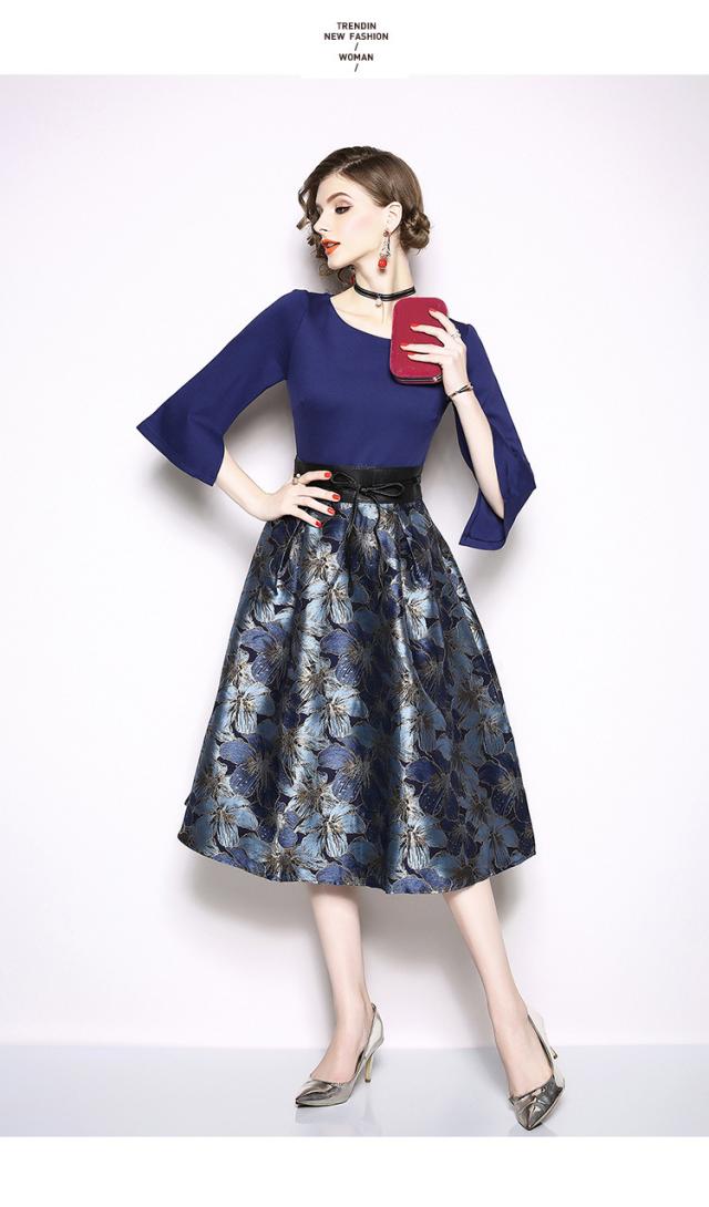 夏ハリ感があるフラワーカット生地のスカートはふんわり広がるワンピース。