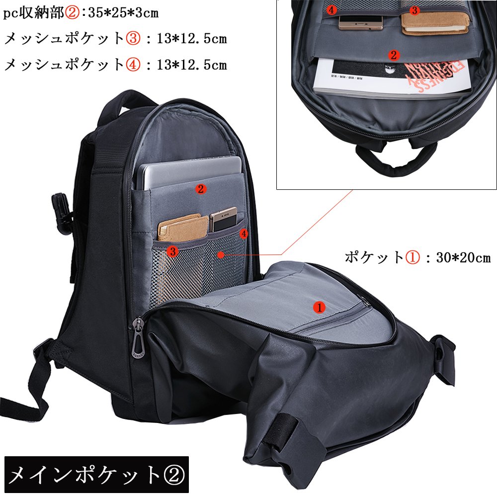 Main pocket ①: You can also store clothes for one night, there is enough capacity.