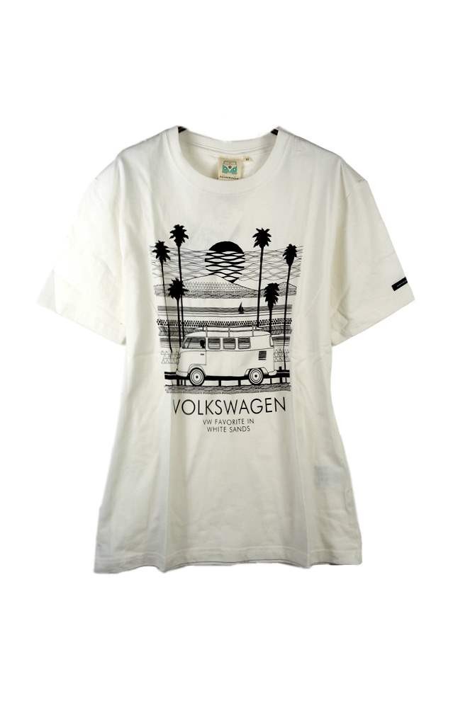 夕日をバックにVOLKSWAGENがプリントされているTシャツ。