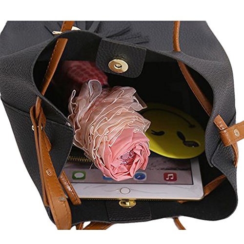 -. Feature : FASHIONABLE DESIGN WITH PRACTICALITY- Made with high quality PU leather material with stylish tassel decoration and gold-tone metalware. / Size:L8.66"xW6.30"xH10.24" / COMPARTMENTS - 1 magnetic snap closure large spacious main compartment for essentials; 1 detachable small zipper closure pouch for small accessories. / Useful and practical yet stay fashionable for everyday occasions such as casual outdoor activities, shopping, traveling, school, work,etc. / This is a great gift for yourself or friends!!!