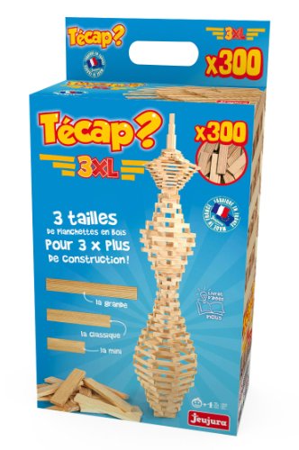 Tecap 300 piece construction kit in natural wood pieces that come in three sizes for building your own designs. Wonderful for children's imaginary play time. Helps to developed dexterity and creativity. This hard wearing set will keep children entertained for years. Made in France by the famous French company jeujura who specialize in high quality wooden toys. This set is completely safe and would make a perfect gift for any child aged five years or above.Feature