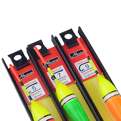 -. Feature : Material:wood + plastic, durable to use / Ideal for most types of fishing / Wonderful tool for fishing lovers / It can transmit signals accurately once the fish bites the hook / There are three kinds of hook of each item, the size of the hook can be divided into:5 #, 7 #, 9 #(included 1x Bite lead+1x Fish drift+1x Winding board)