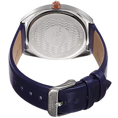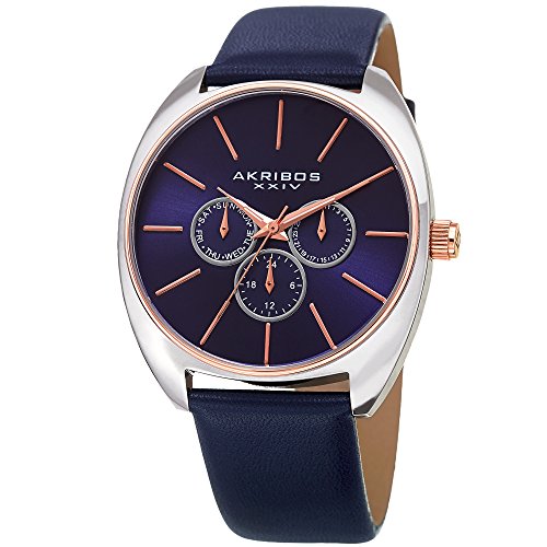 -. Title : Akribos XXIV Men's Quartz Sunray Silver-Tone and Blue Leather Strap Watch - AK998BU