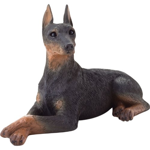 Sandicast Small Size Black Doberman Pinscher Sculpture, Lying