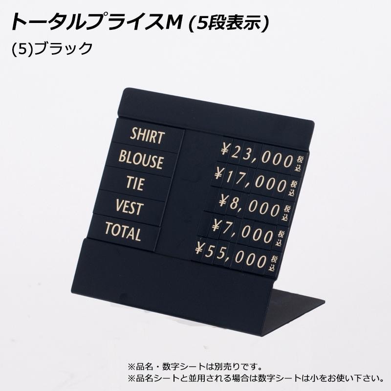 最大5段表示まで可能なトータルプライスです。ベーシックなブラックタイプ。洋服やインテリアのコーディネートのトータル表示等におすすめです。