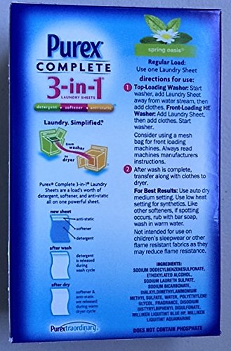 Studio : Henkel Co. Publisher : Henkel Co. Binding : Kitchen Product Description What a great way to make doing laundry easy. Soap, softener and anti-cling all in one easy sheet. Great for taking on vacation. Can be cut into narrow vertical strips, and and doing laundry in your hotel is as easy as filling the bathroom sink and placing a strip of Purex 3 in 1 into the water. No liquids, no mess, no fuss. 0