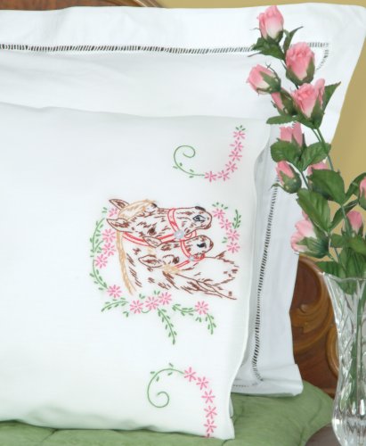 Jack Dempsey Needle Art 1600142 Perle Edge Pillowcase, Mare and Colt with Perle Edge Finish, 20-Inch by 30-Inch, White
