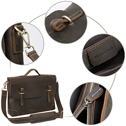 -. Feature : Dimension: 40cm (15.7") x 28cm (11") x 9cm (3.54"), fit up to 15.6" laptop / Material: High Quality Cow Leather. Sturdy top handle, simple and generous design for business use / Structure: 1* Zipper Compartment, 2* Slip Pocket, 2* Pen Slot, 2* Zipper Pocket. Fit A4 documents, business cards, conference file, notebook, pens, etc / Adjustable shoulder long straps (appr. 85 ~ 145 cm) / 【Jack&Chris】is a trademark registered in the US, UK and other countries. Any unauthorized sellers will certainly bear the legal consequences of Copyright Infringement.