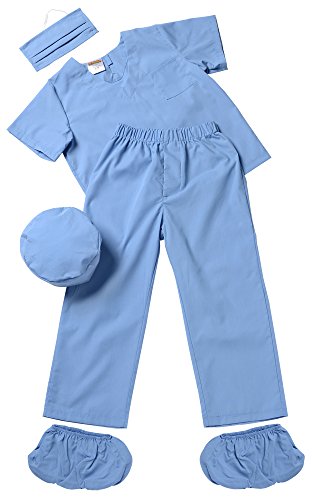 -. Binding : Toy -. Brand : Aeromax -. Color : Blue (As shown) -. Department : boys -. Feature : HIGH QUALITY, DURABLE design allows for use again and again. Machine washable too! / INCLUDES: surgical shirt, surgical pants, surgical cap, surgical mask, and matching surgical shoe covers. / AVAILABLE IN MULTIPLE SIZES: 2/3, 4/6, 6/8, and 8/10. / INTENDED for girls and boys who enjoy pretend play, role play, or need a quality costume. / EVERYTHING you need for your aspiring doctor, nurse, vet, or dental hygienist. This item has been tested to meet USA safety standards for children's products -. Label : Aeromax -. Manufacturer : Aeromax -. MPN : DRP-810 -. NumberOfItems : 1 -. PackageQuantity : 1 -. PartNumber : DRP-810 -. ProductGroup : Apparel -. ProductTypeName : BABY_COSTUME -. Publisher : Aeromax -. Size : 8 / 10 -. SKU : AERO20 -. Studio : Aeromax -. Title : Aeromax Jr. Doctor Scrubs, available in Blue or Pink