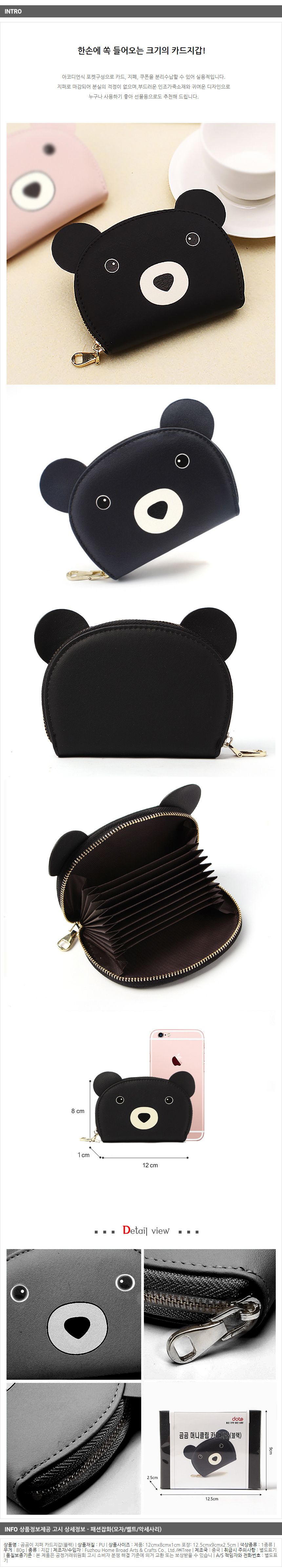<상품명 : ZP8 곰곰이 지퍼 카드지갑(블랙)>