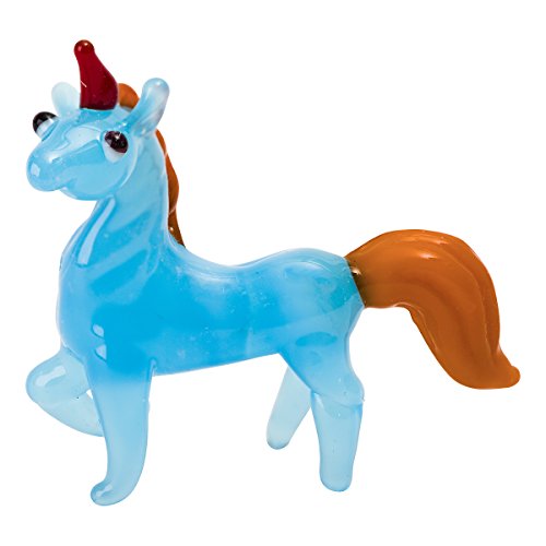 -. Title : Tynies Unicorn Glass Figurine, Blue, 1.9" x 1.6" x 1.2"