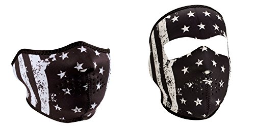 -. Feature : This Product is a 'Bundle' of 2 Neoprene Face Mask Items identified as a 'Black & White Vintage U.S. Flag Face Mask' and a 'American Flag' / The First Facemask Item is the ZanHeadgear 'Black & White Vintage U.S. Flag Face Mask' Half Face Neoprene Face Mask / The Second Facemask Item is the ZanHeadgear 'American Flag', Child / Kid Sized, Full Face Neoprene Face Masks / Face Masks / Ski Mask Items are made of Durable, Naturally Warm & Water Resistant Neoprene Face Mask Material / Face Mask Sizes are adjustable, by up to 2 inches, using the Hook & Loop closure, located at the back of the head
