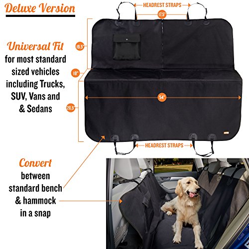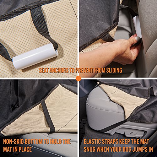 -. Feature : SAFE & COMFORTABLE RIDE - rest assured you will be able to concentrate on driving and your dog will be safe and comfortable on this non-slip, heavy-duty canvas and polyester / PROTECTS FROM: dirt, dander, hair, nail scratches, slobber, odors and spills like water, drinks etc. / UNIVERSAL FIT - for most standard size vehicles, including trucks, SUVs, , and sedans / EASY INSTALLATION - install is a breeze with adjustable straps with clips / LARGE COVERAGE AREA- keep your upholstery looking good, won't stain seats, covers seat backs of front seats, center console, and entire back seat